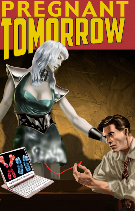 I shrugged, "I'm only repeating what Rylla told me. I know it sounds screwy. However, I have to wonder: given the proper medical nanites, could a human body be prepared to receive a fetus? Maybe even a male's body."