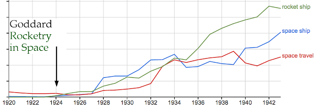 The graph, above, also shows the time period in the 20th century when the term "science fiction" came into common use. In 1953, a book called Modern Science Fiction was published and it included an article by Asimov.
